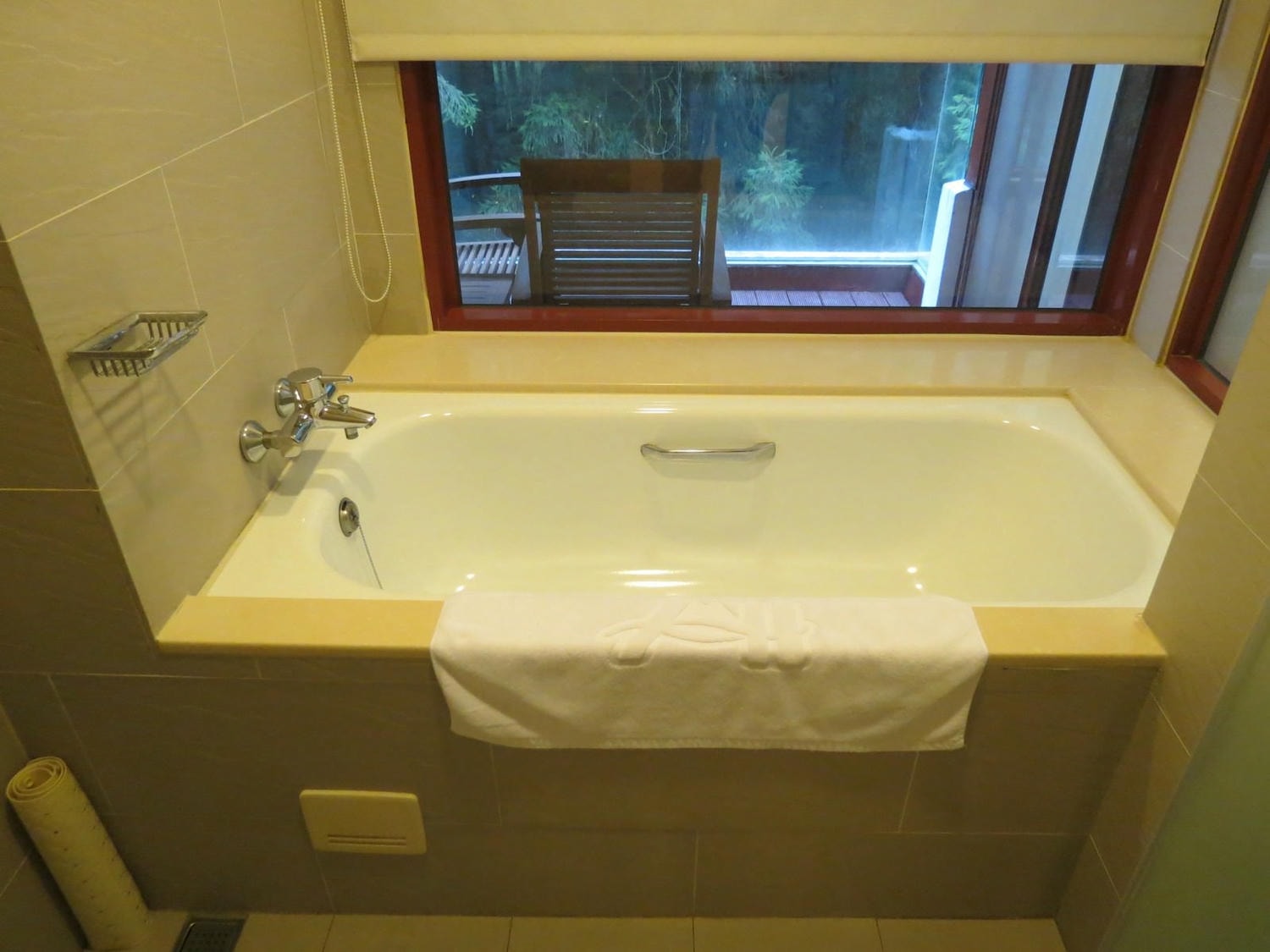 浴室內有浴缸可供泡澡,外面還是森林風景。像我還蠻喜歡去野溪溫泉全裸泡湯,就是喜歡這種自然放鬆的感覺。