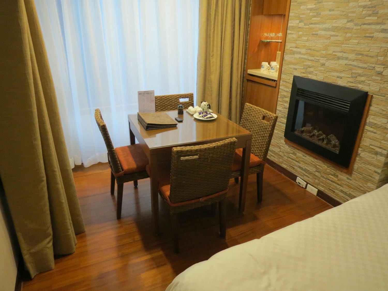造景暖爐,這天來阿里山是12月底,低溫大概是8度(看日出時),但室內空調還蠻暖的,甚至睡覺時會覺得有點熱,就沒特別再開暖爐。