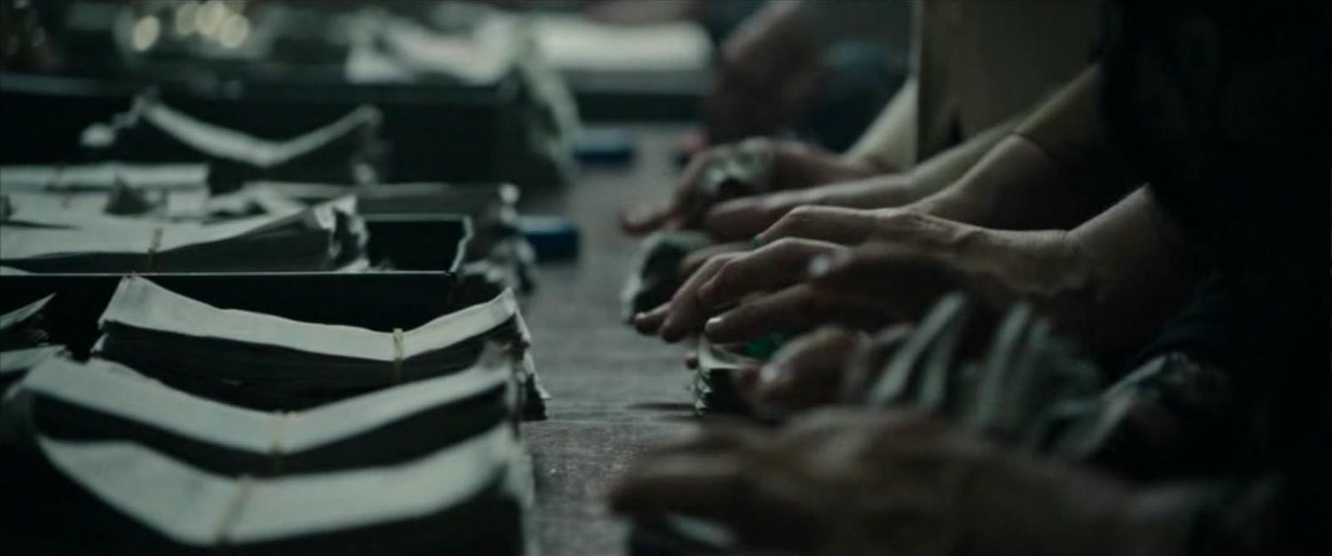 蓋提一直在看的東西是電報紙條(ticker tape),現今早已停用,以前是用來列印不斷變化的資訊,如股價。