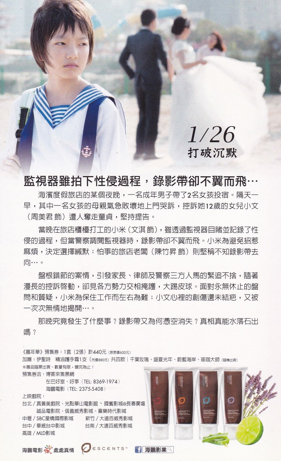 劇情描述:兩位有著不同成長背景的女孩,在海濱旅館某夜的不期而遇,卻遭逢了改變她們人生的重大事件。該片以女性為視角,道出一個堅強而勇敢的成長故事,在現今價值混亂的時代中,格外具有扶正醒世的意義。