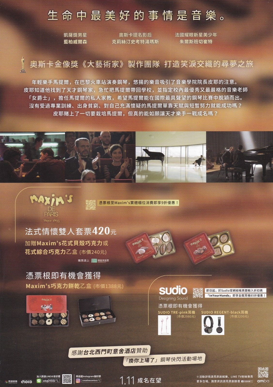凱薩獎男星藍柏威爾森賭上終身教職只為栽培新秀,克莉斯汀史考特湯瑪斯化身魔鬼鋼琴教師,法國新星朱爾斯班切崔特挑戰法國版《進擊的鼓手》。