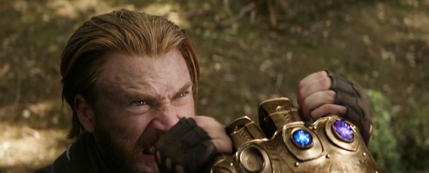 另外美國隊長雙手擋下薩諾斯無限手套這幕,預告中只有2顆寶石,但在正片中此時他只剩幻視頭上的心靈寶石還沒拿到,已有5顆寶石。