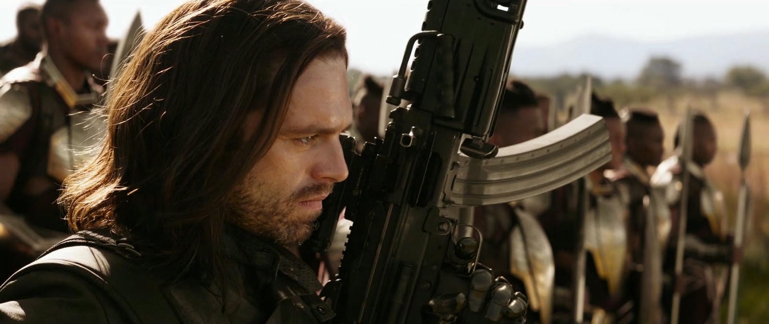 本來的身分是「酷寒戰士」(Winter Soldier),美國隊長的好友,曾被九頭蛇抓去改造成反派,在「黑豹」中被黑豹他們救回來,已把他腦中控制程式去除(電影沒有演),這集給了他新手臂,應該也是汎合金的。