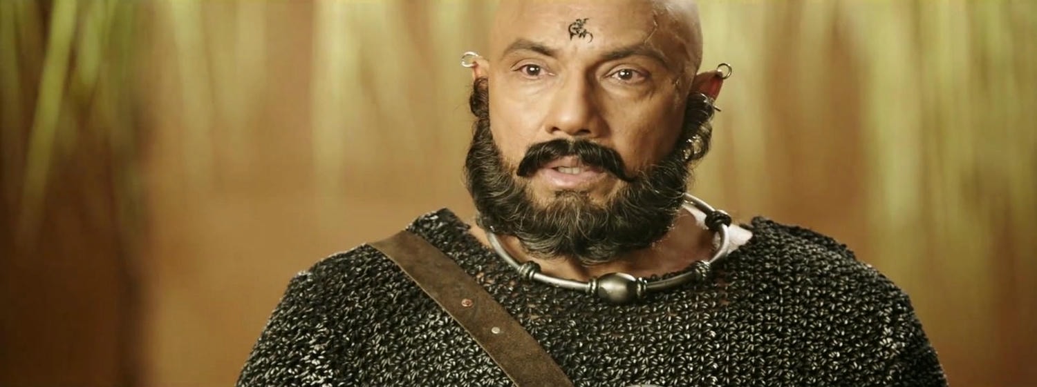 Sathyara/Sathya Rajj 飾演 卡塔帕/Kattappa,世代效忠於馬西馬帝王國,阿曼蘭得都叫他「阿舅」。