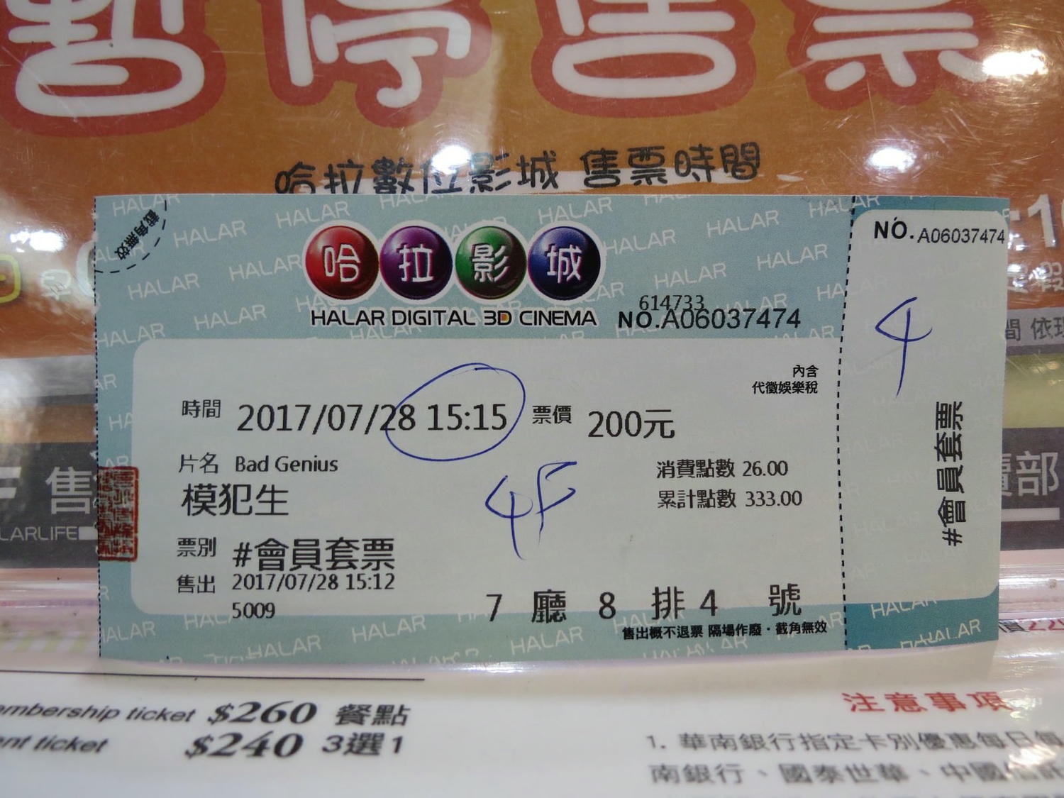 - 附註1:雖然看電影時會覺得這部作品是以題材比表現手法取勝,台灣若有足夠的創意應該也能拍出這種電影,不過查了一下 IMDb,這部的預算也要 6,000萬泰銖呀!(比值跟台幣差不多)不過光《目擊者》(2017年) 預算也要 4,300萬台幣就是了。而《瞞天過海》的預算是 8,500萬美元,大約是這部泰國電影的47部。