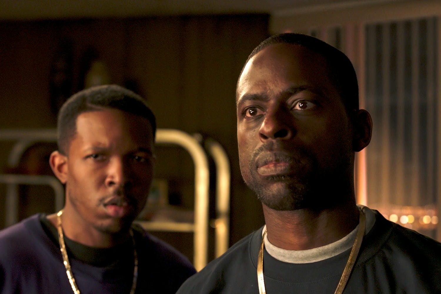 Sterling K. Brown 飾演 尼喬布/N’Jobu(圖右),帝查卡(黑豹爸爸)的弟弟、帝查拉(黑豹)的叔叔,因認為非裔族群在哪都受到壓迫,想利用瓦干達科技來統治世界,於是偷走汎合金。