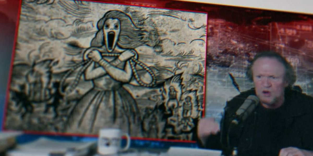| 右上:神力女超人,新聞內容是:這是一個會用繩子把人勒死的女巫。 |