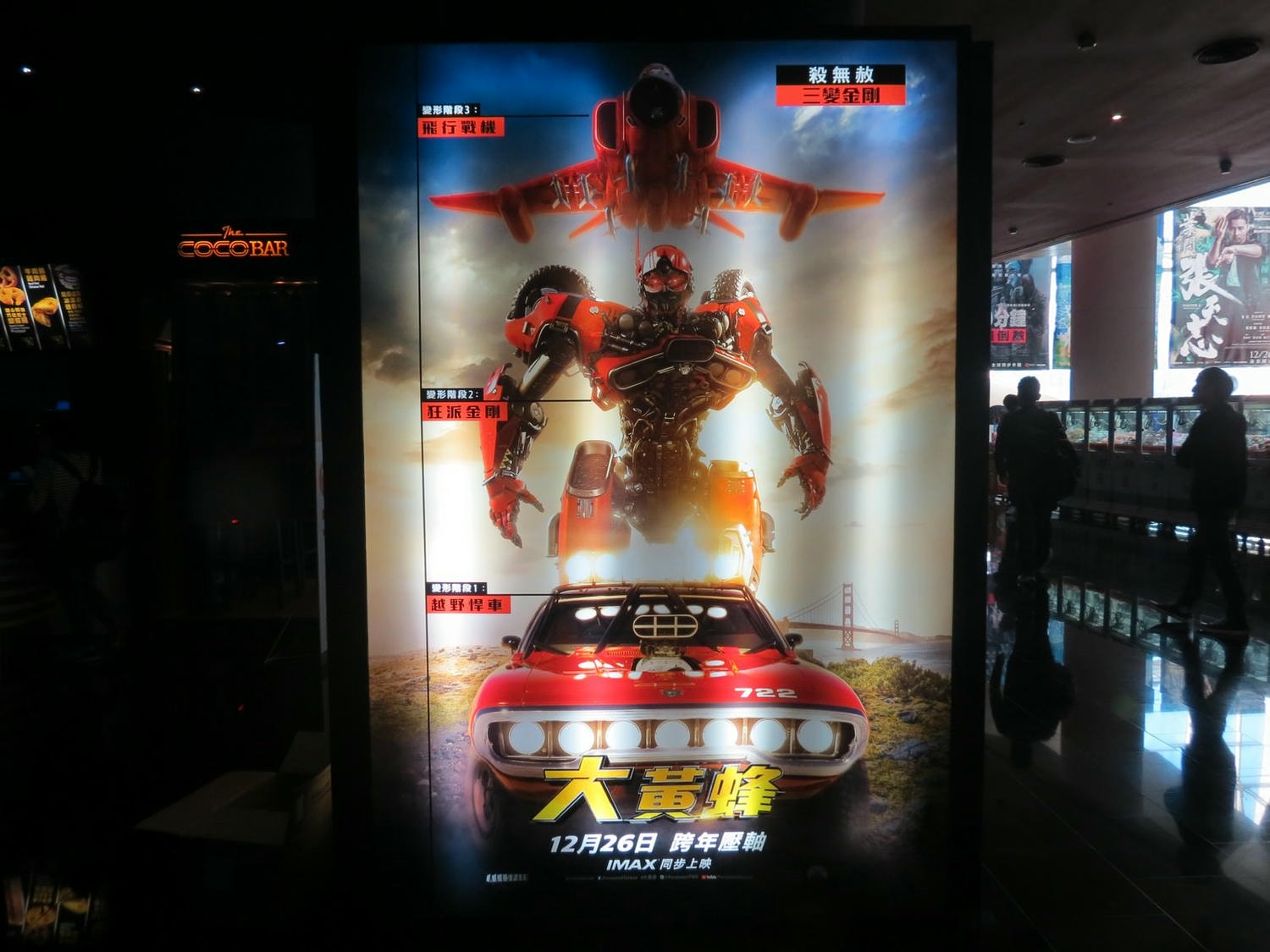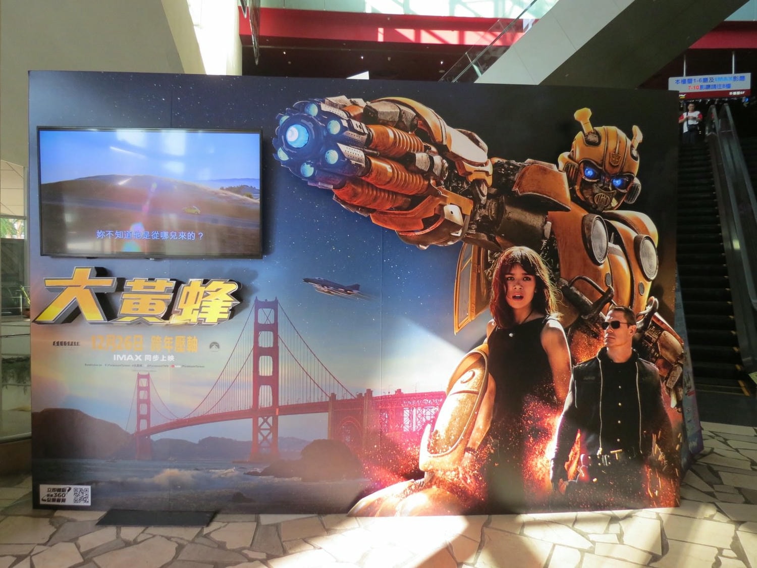 這兩個應該是同一款宣傳看板,一樣是紙質模型,但早期就擺放的版本高度不夠,擋住了片名與上映時間。
