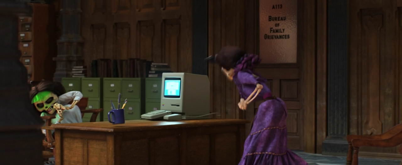 這幕有《玩具總動員》系列電影的巴斯光年(Buzz Lightyear),另外一個臉不像但造型很像警長胡迪(Sheriff Woody)算不算就看個人了,此外還有《怪獸電力公司》(Monsters, Inc., 2001)的大眼仔(Mike Wazowski)。