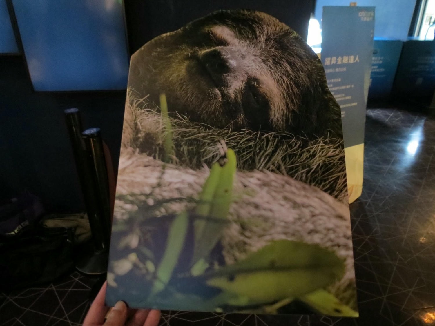 特映會現場有提供很多動物看板可以合照,依序為:南極企鵝、海鬣蜥、貓熊、長頸鹿、巢鼠、三趾樹懶