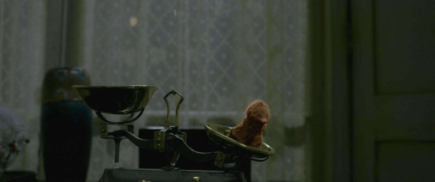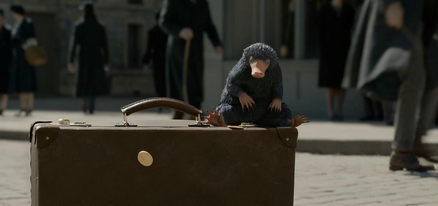 玻璃獸/Niffler,首集就有登場,喜歡閃亮的珠寶、黃金,腹部的口袋可裝下比身體體積還大的東西,喜歡偷取別人身上的珠寶首飾。
