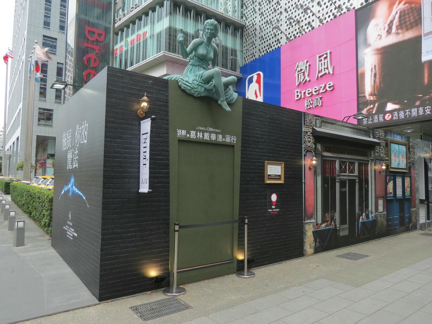 微風松山(微風廣場 松高店)前方有《怪獸與葛林戴華德的罪行》宣傳主題屋。