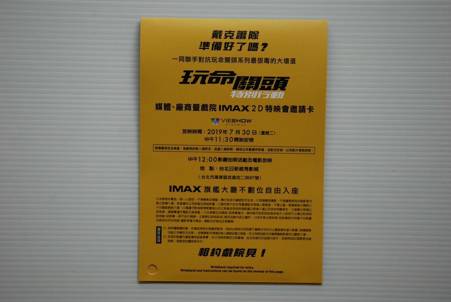 打開後是用手環的方式綁在手上當入場券。