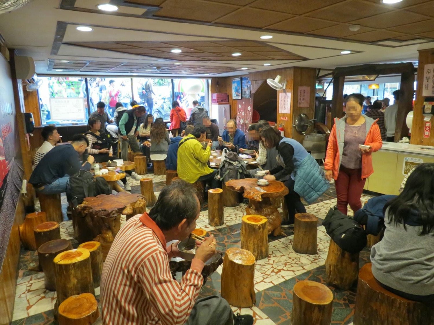 用餐環境,樹幹做的桌椅。