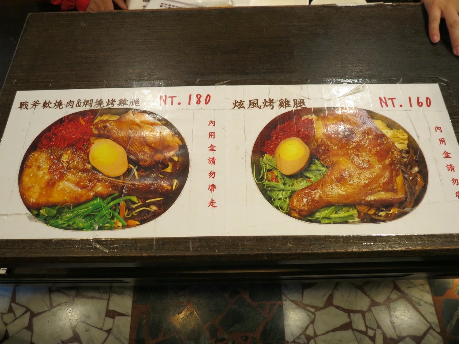 - 雞腿+燒肉組合,價格上多了20元,雞腿是小雞腿;炫風烤雞腿則是大雞腿。