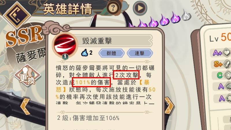 攻擊力的部份,以「英雄」來舉例,攻擊會有兩個部份: