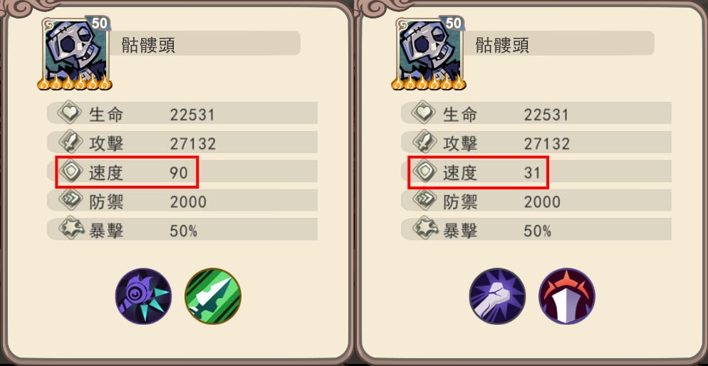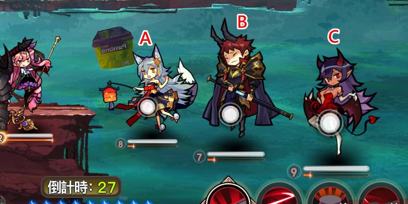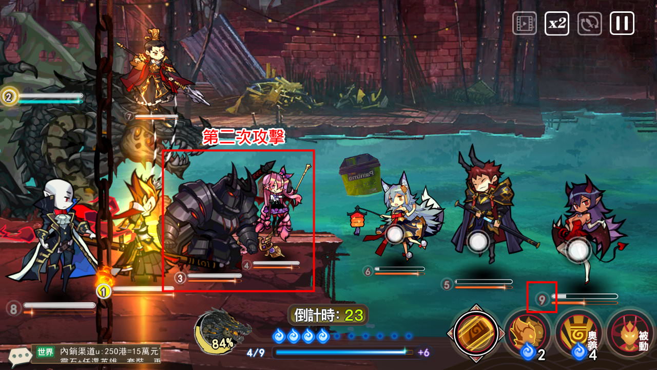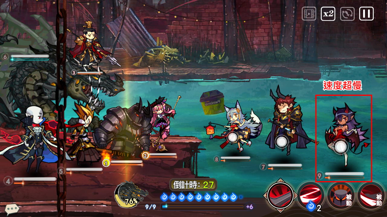 換句話說,我方有1主角+4英雄,前6次(視敵人速度而定)出手只要能打死左邊兩位即可,第7~9次出手打死右邊那位,就能讓對手沒有機會反擊。