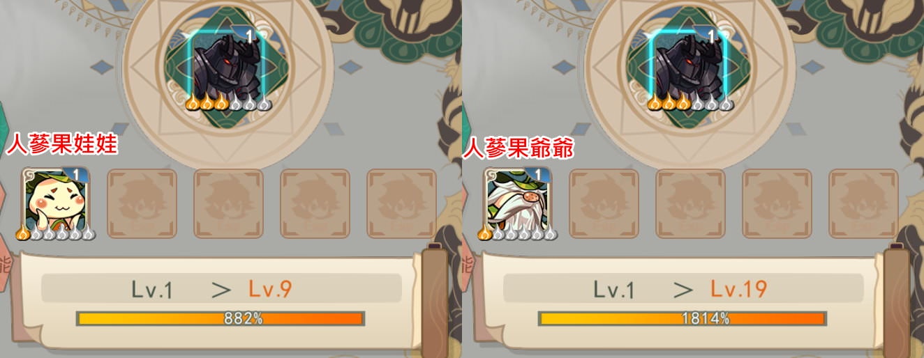 英雄中,人蔘果娃娃、人蔘果爺爺主要就是拿來讓英雄快速升等的。