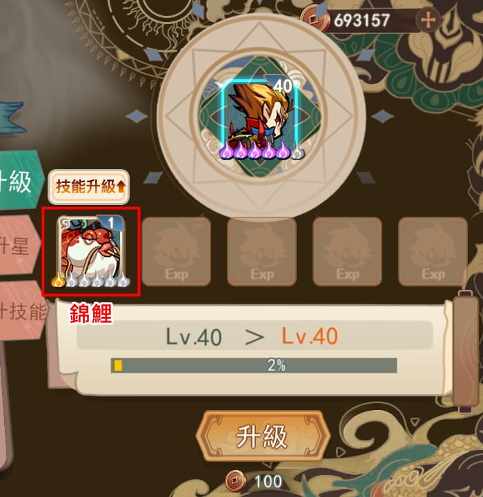 方法2:在英雄養成界面,用「錦鯉」去做升級、升星或升技能的動作。