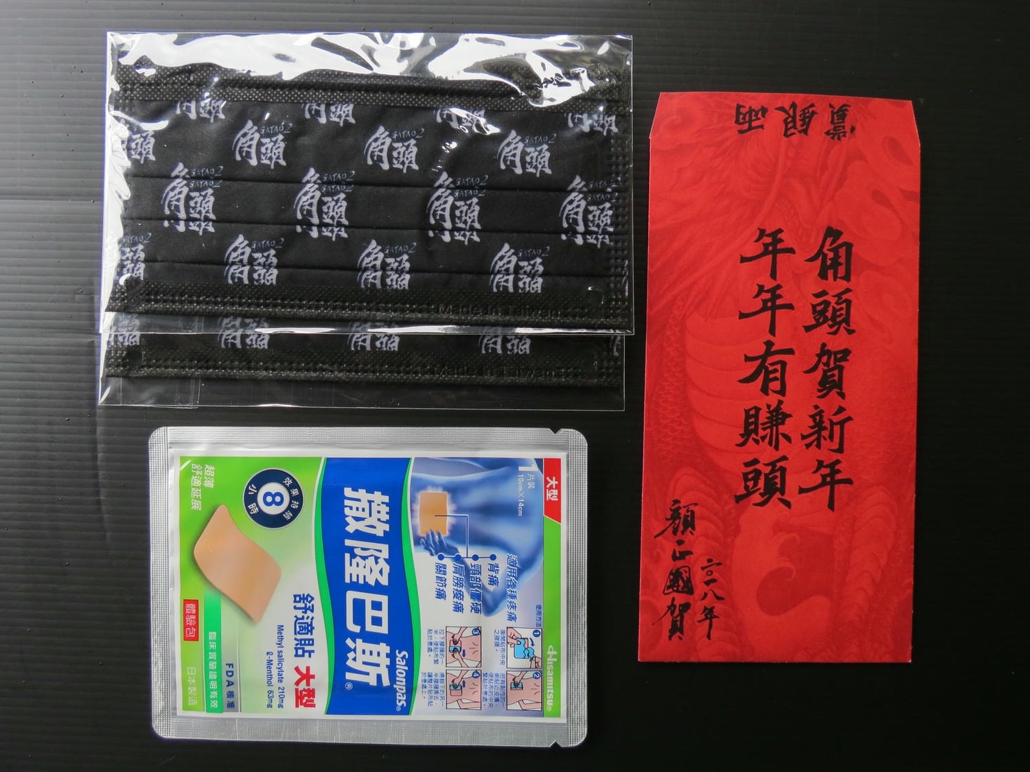 適逢春節上映,特映會現場還有發送春節賀禮,有《角頭2》的口罩(這是因應台灣空汙問題嗎?)、紅包(之前就知道顏正國在獄中練得一手好書法,我很羨慕寫字漂亮的人)、痠痛貼布(從南天門一直砍到蓬萊東路不只眼睛會乾,手也會痠喔)。
