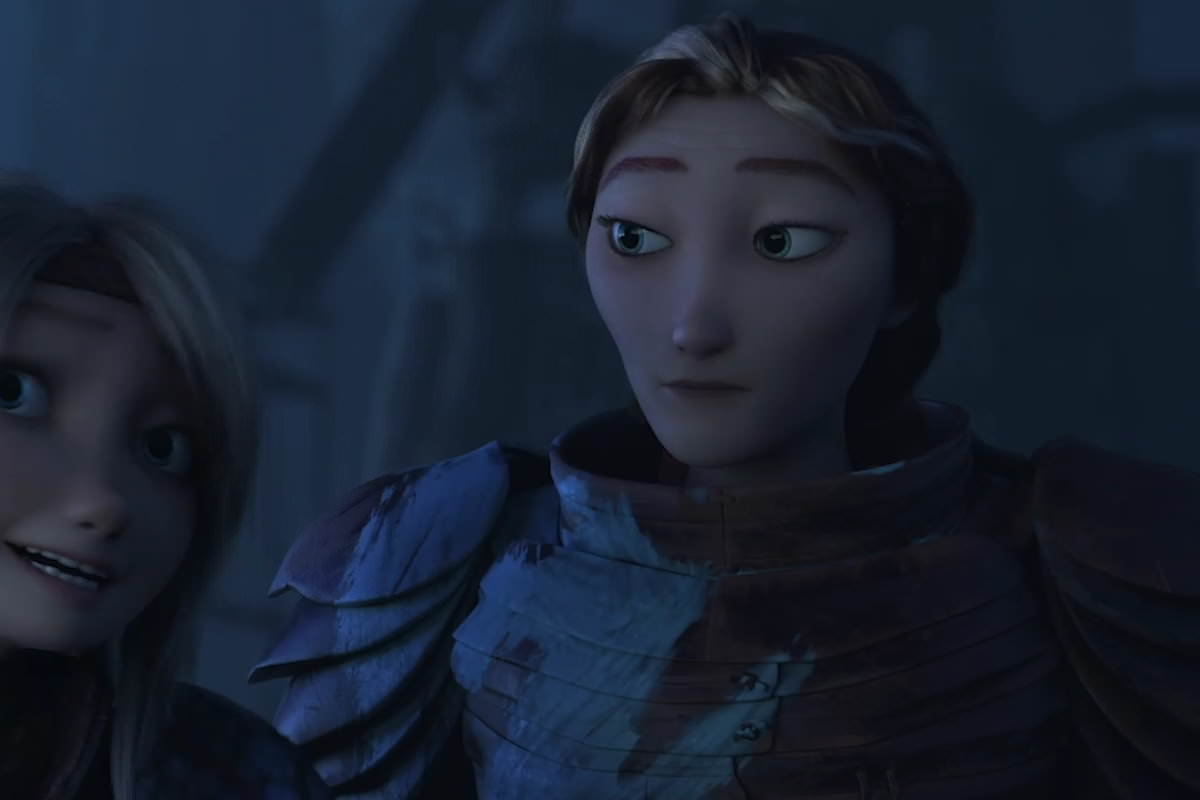 娃卡/Valka,小嗝嗝的母親,這集多了些白髮,由 凱特·布蘭琪/Cate Blanchett 配音。