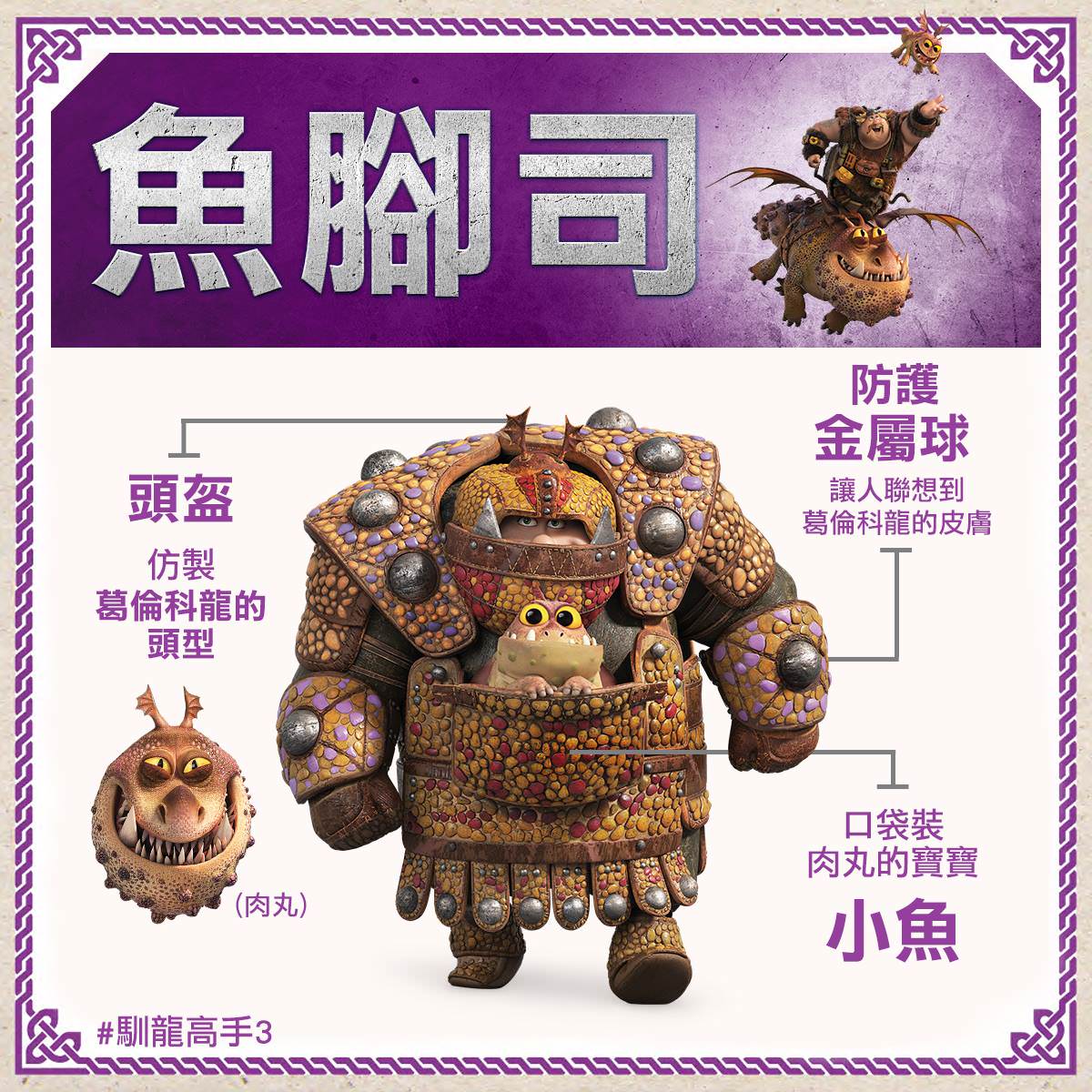 魚腳司·英格馬/Fishlegs Ingerman,熟悉龍族的龍騎士,由 克里斯多福·敏茲-普雷斯/Christopher Mintz-Plasse 配音。