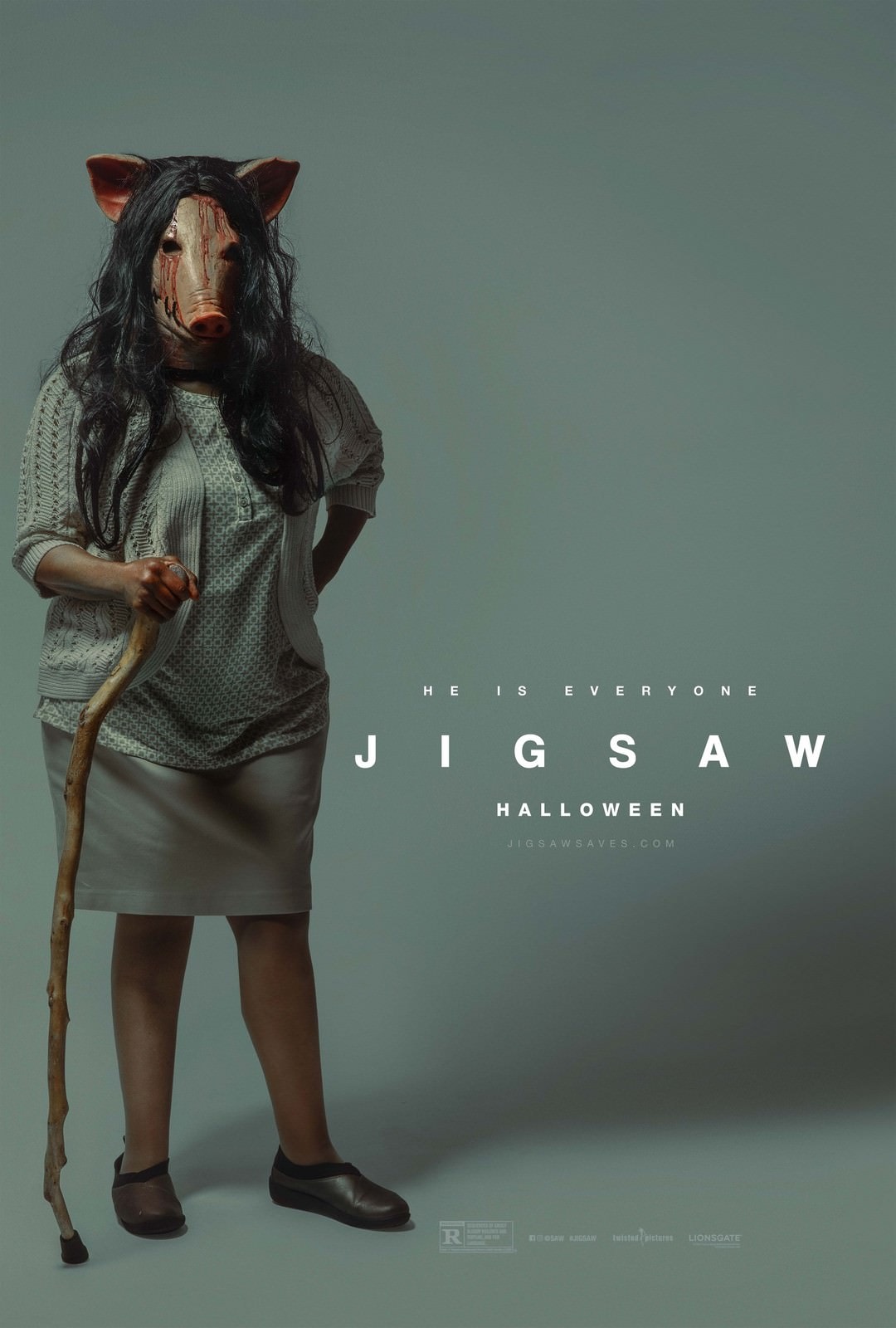 - 有款海報是讓形形色色的路人戴上豬頭面具,表達『人人都可能是拼圖殺人魔』。