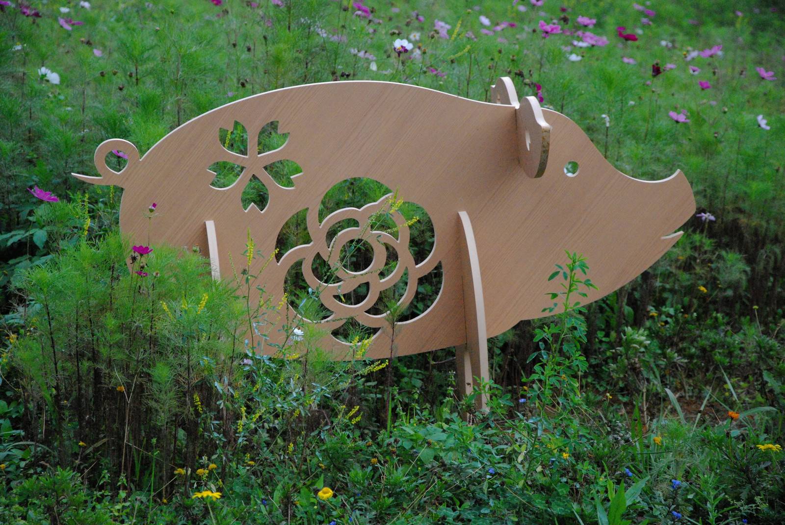 2019年是己亥豬年,入口就可看到身上有著花瓣圖案的可愛小豬。