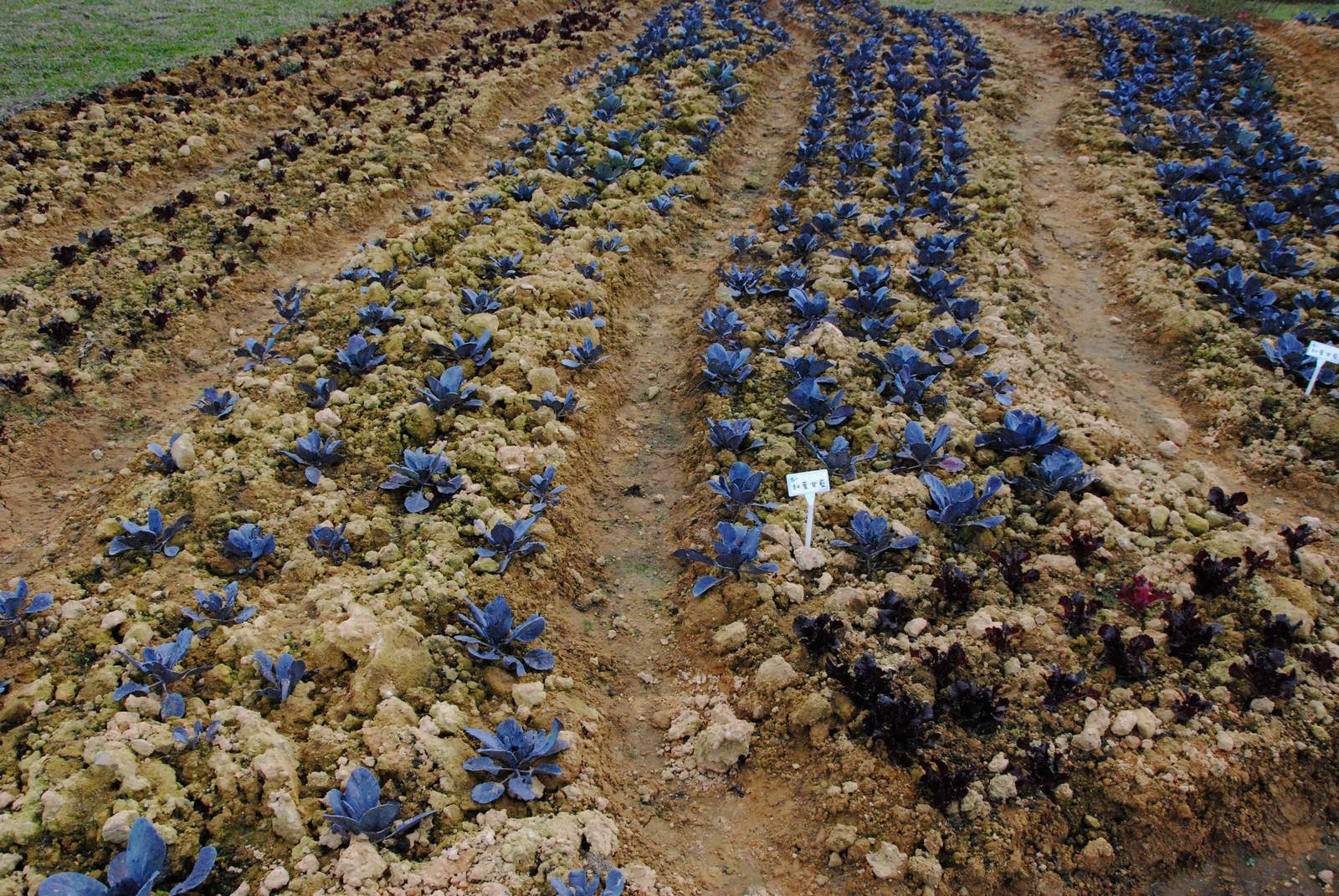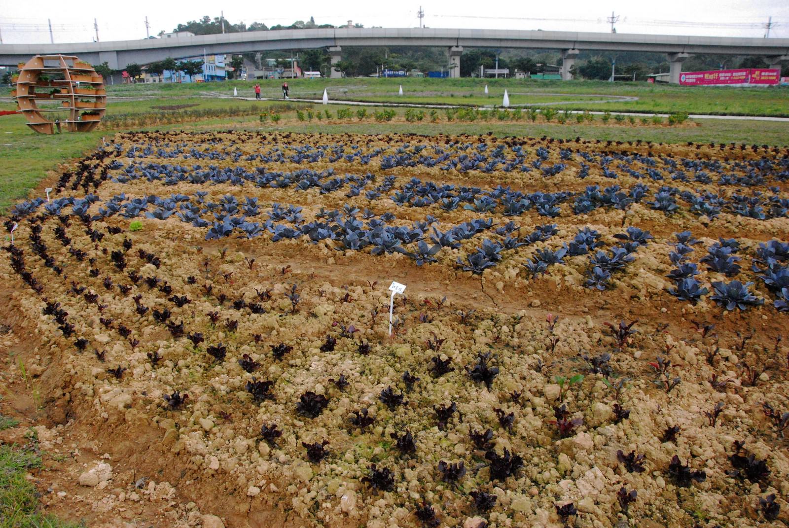 目前公園有規劃不少菜圃,上頭都有介紹菜名,頗具教學功能,讓民眾認識餐桌上的蔬菜,上圖為紅葉甘藍。