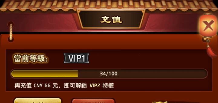 當「累積」充值金額達到某個程度時,會提昇 VIP 等級,並顯示有什麼福利。(點「VIP特權」也可先預覽)