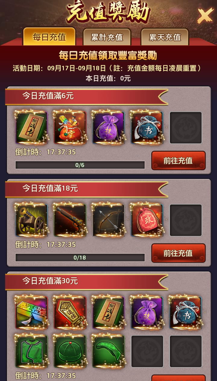 月卡跟年卡都有購買時限,若已買完月卡跟年卡後還想充值,在兌換元寶的報酬率上會低許多,但此時充值主要就是「充值獎勵」,以及衝高VIP等級。