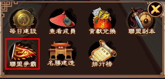 | 功能:功能操作 | 聯盟副本 | 殭屍古洞 | 聯盟上貢 | 聯盟爭霸 | 聚寶游商 | 聯盟太學 |
