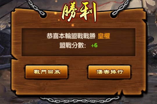 對戰後,「盟戰分數」勝利會增加,失敗會扣分,加多少分是看對手聯盟等級。可以點「戰鬥回放」來看戰鬥過程。
