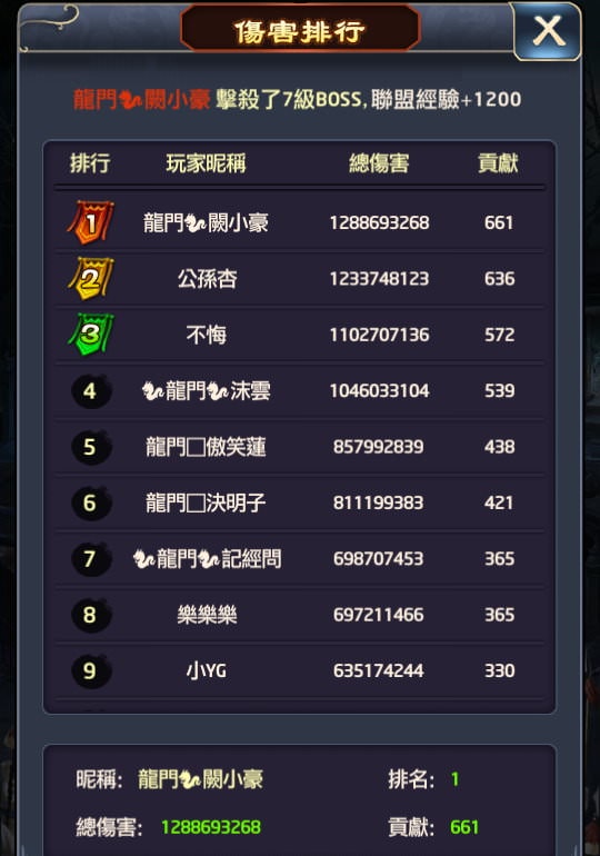 趕屍道長積分 = 基本1分 + 每滿600萬傷害多1分