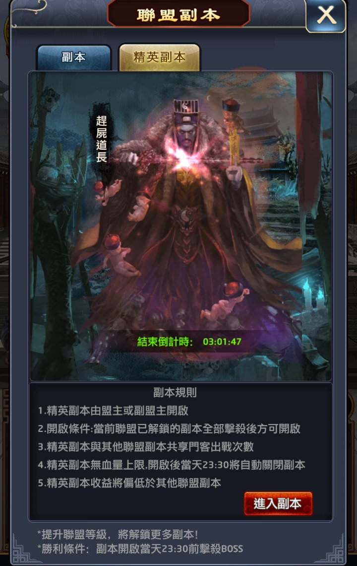- 附註3:精英副本(趕屍道長)要聯盟等級6才會開啟。