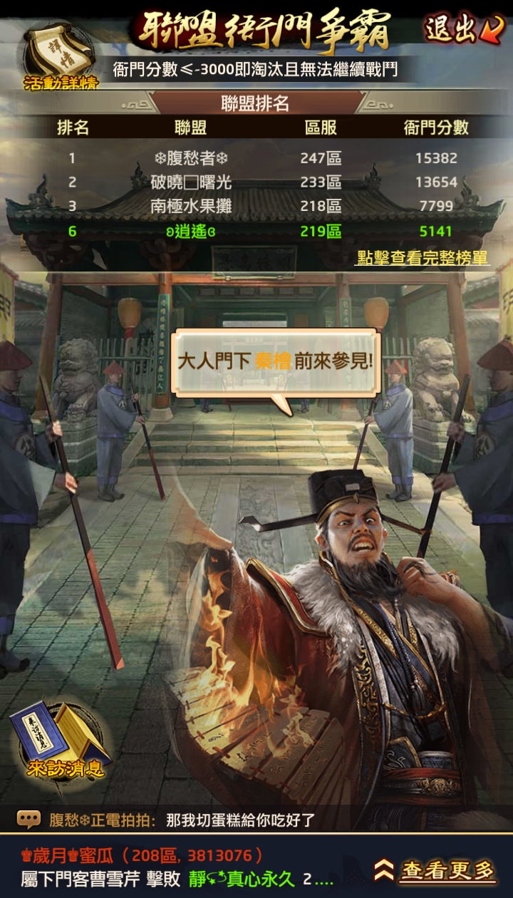 這遊戲「衙門」相關衝榜拿票都要相當小心,一不小心就可能成為聯盟/區服的罪人,自從「逐鹿中原」後,會不會出現在「被打名單」(會被隨機遇到、能用追捕打)就更為複雜,