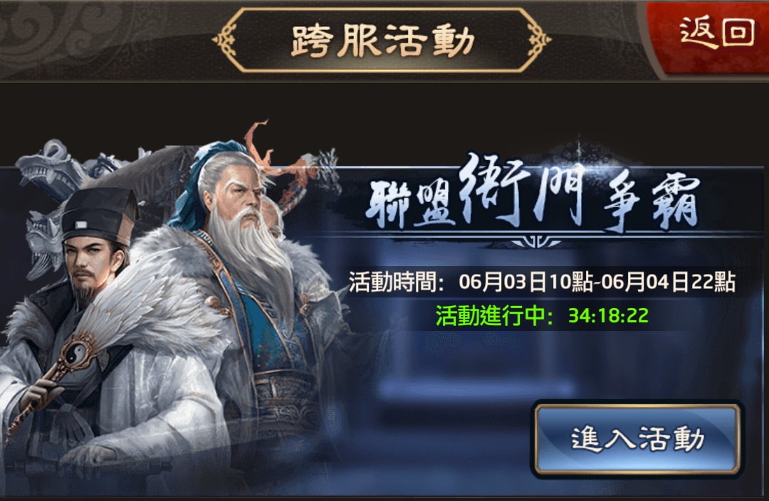 額外說明:目前4個聯盟跨服衝榜似乎是用「福利活動」(小活動)來取得門票,但這點被很多玩家抱怨,因為很多服都有那種「專門養一堆小號,完全不關門客,元寶全用來衝福利活動,鬧福利活動榜、跨服衙門榜」的玩家,正常玩的玩家元寶會花在流放門客與紅顏,若不是充值大盟或有大神在的聯盟,很容易長期被鬧榜,有這種鬧榜玩家在的區服,正常聯盟反而可能無法參賽。