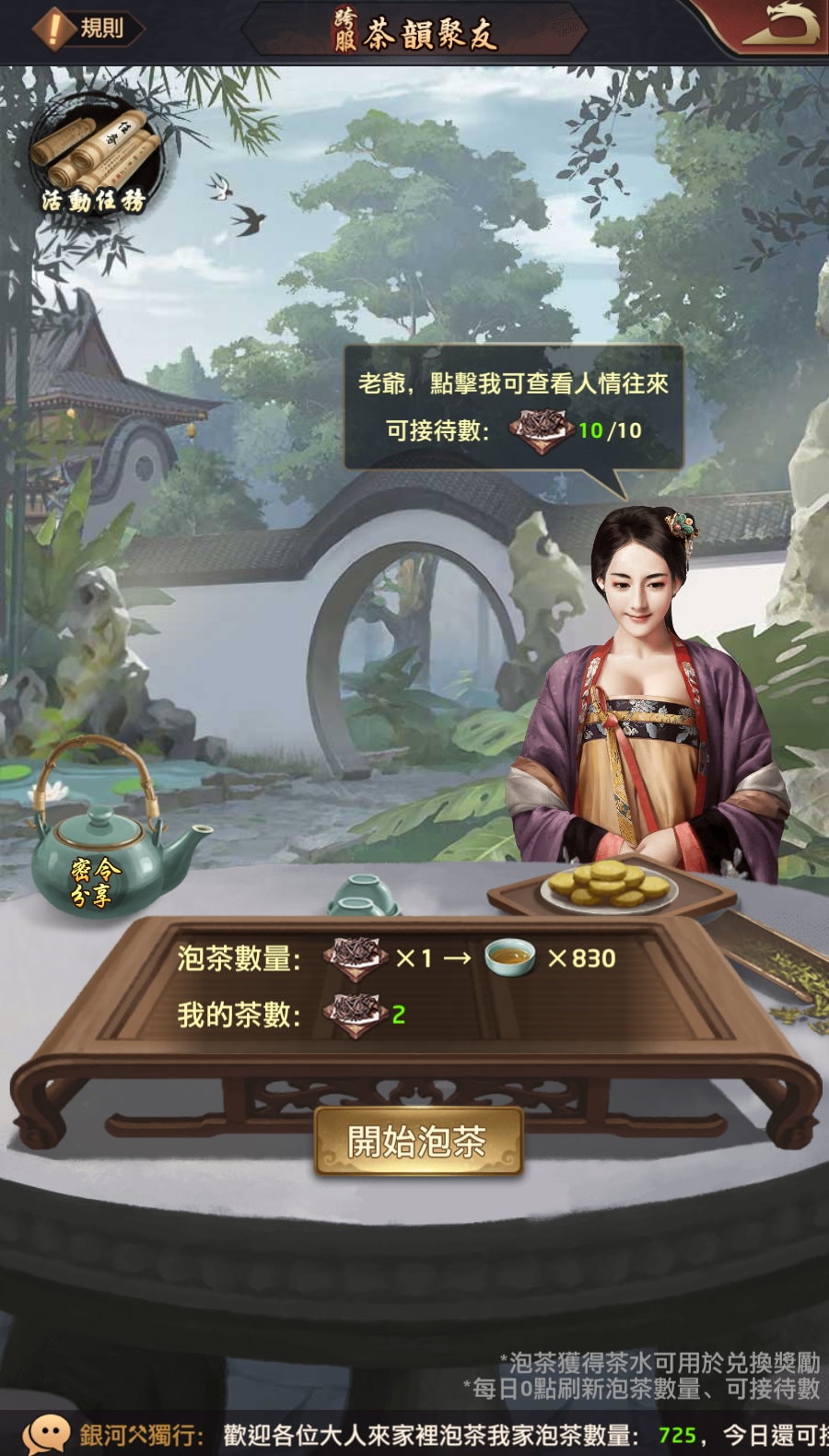 - 小號,不管還有沒有在玩的,開啟「茶韻聚友」沒有門檻。