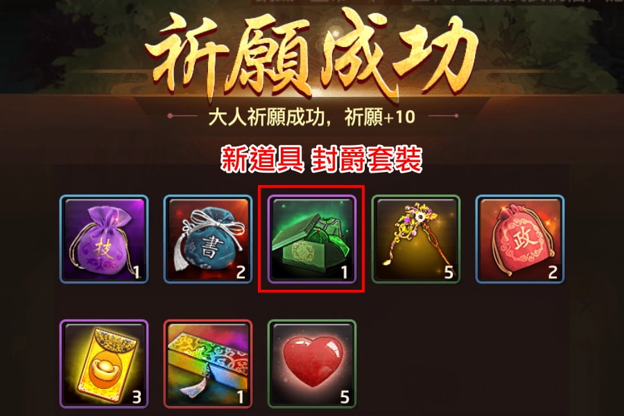 建議不儲值玩家也要參與,花10元寶可祈願10次拿些小獎勵。
