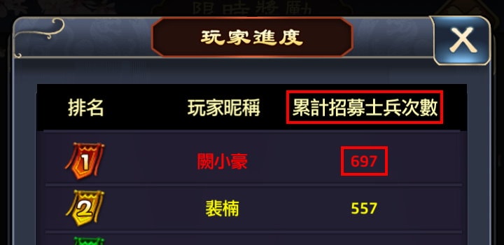 假設25號是「士兵消耗衝榜」,就算你從24號中午就開始沒有上線,你的「累計招募士兵次數」是會從25號凌晨12點過後開始計算。並不會從你24號中午離線後,到25號登入遊戲時,把這段時間的收成次數都算在25號的衝榜。