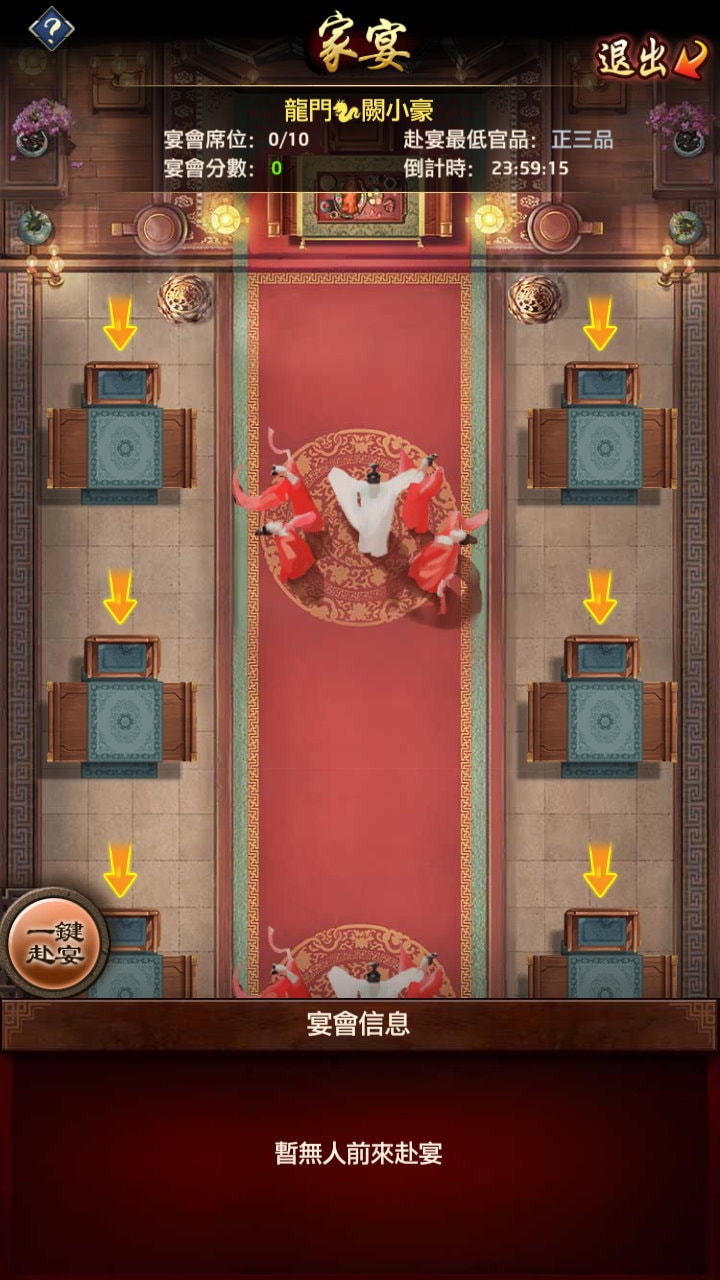 若要迅速入座、一次坐多個位置,也可以點左下角「一鍵赴宴」(官品達「從五品」後開啟)。