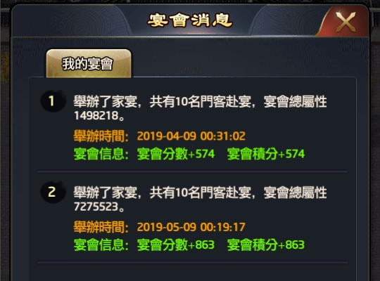 宴會消息就是你每次舉辦宴會後,拿到多少分數。