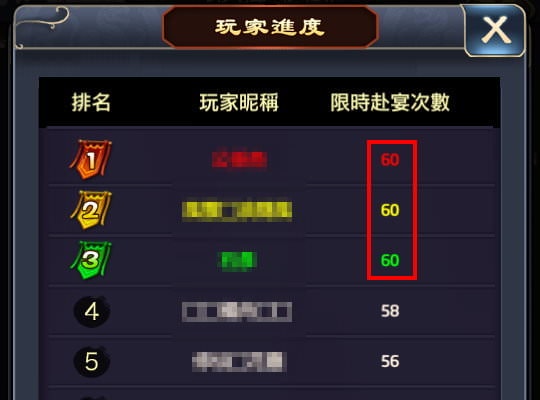 排行榜則是開服到現在,所有玩家在宴會分數的排行。