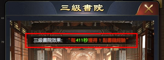 上方可以看到搶奪這個位置會有什麼效果,像「三級書院」是每411秒(6.85分鐘)能獲得1書籍經驗。