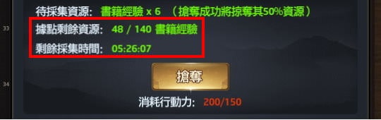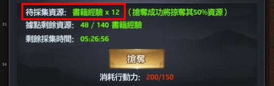 像這位的「待採集資源」是 書籍經驗 x 12,當我成功搶奪時,就能拿走 書籍經驗 x 6。