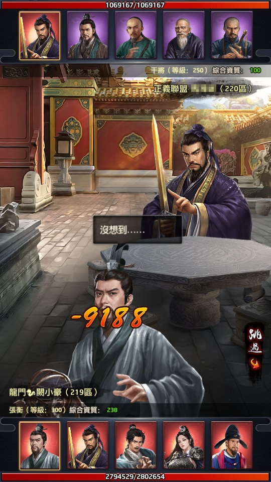 戰鬥過程有點像一場5打5的「衙門」戰,戰鬥採車輪戰,一個門客血量為0時就換下一位上,當然若你只放1位門客、對方派5位來搶奪,就變成是1打5。