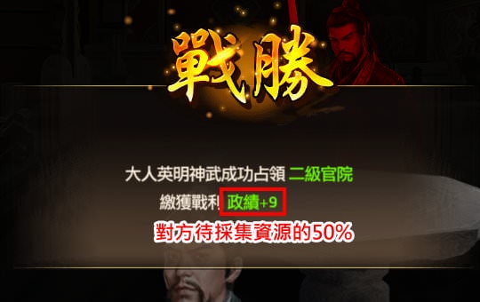 戰勝後,除了能佔領該據點,還能獲得對方「待採集資源」的50%。