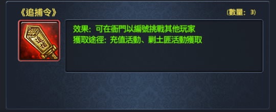 | 2, 挑戰書只有兩個管道能使用,追捕令可以打任何人。 |