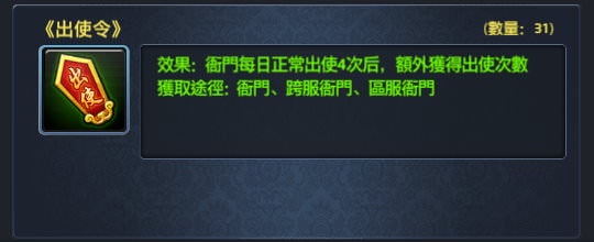 | 1, 限時合成:利用「出使令」合成,對沒充值玩家來說,這是最實際的。 |