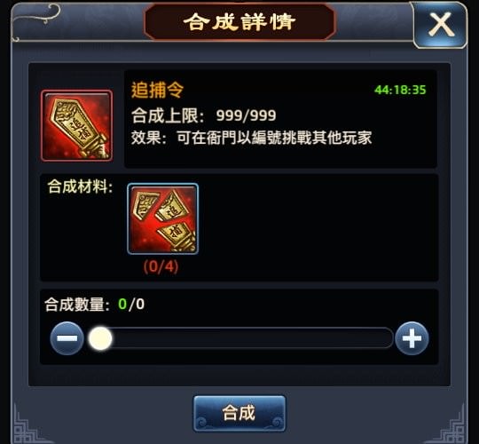 「追捕令」則是需要 4個「追捕令碎片」,合成數量沒有上限。